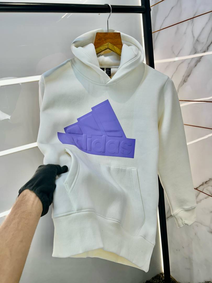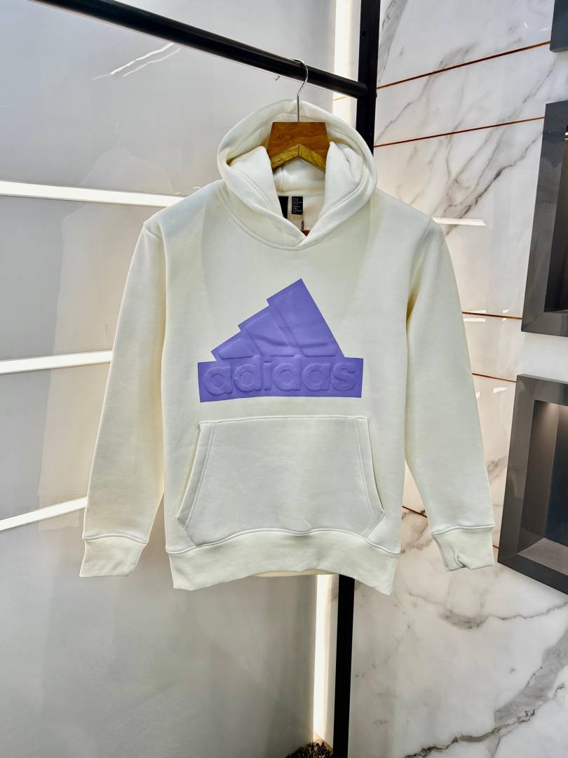 Adida s Imported White Embossed Super Premium Hoodie F1189-WH