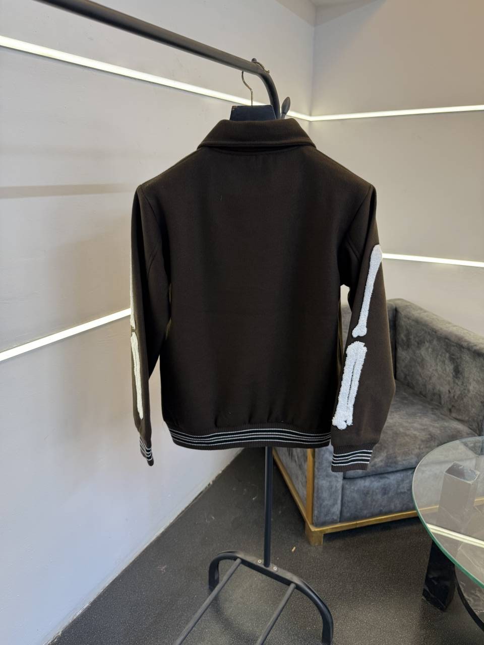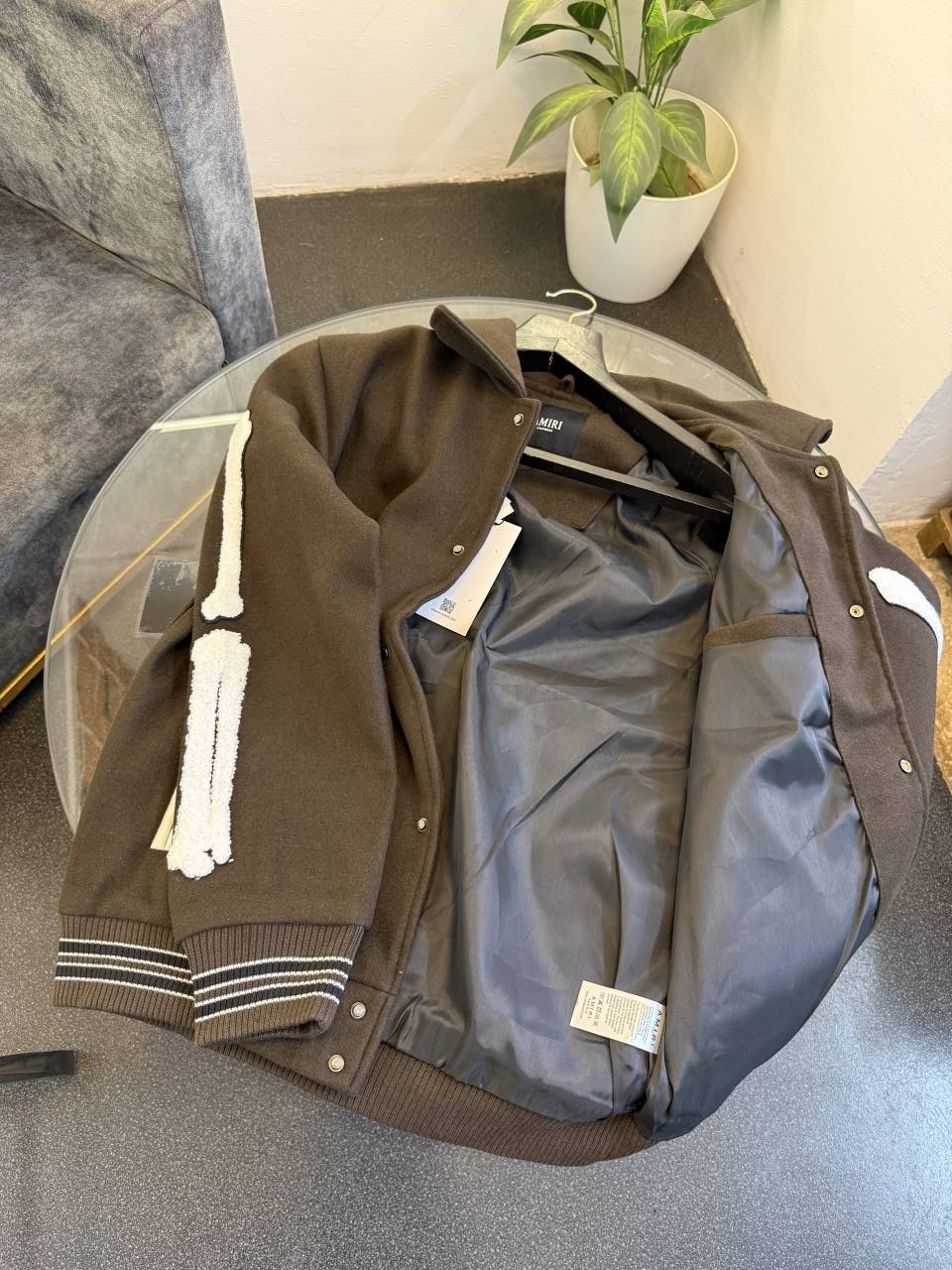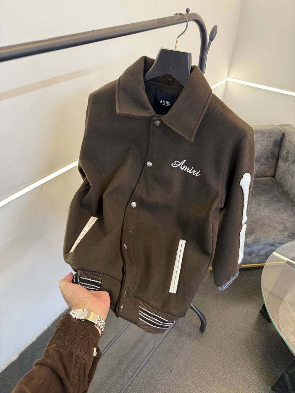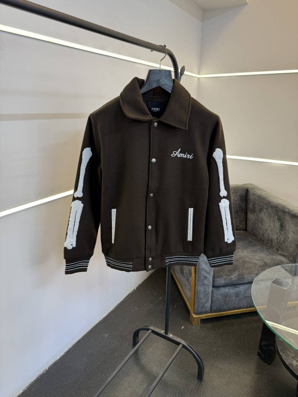 ? *Ranveer singh & diljit fame article amiri bone varsity jacket available with wool blend imported fabric with brand snap buttons and front embroidery brand on chest now in stock*?