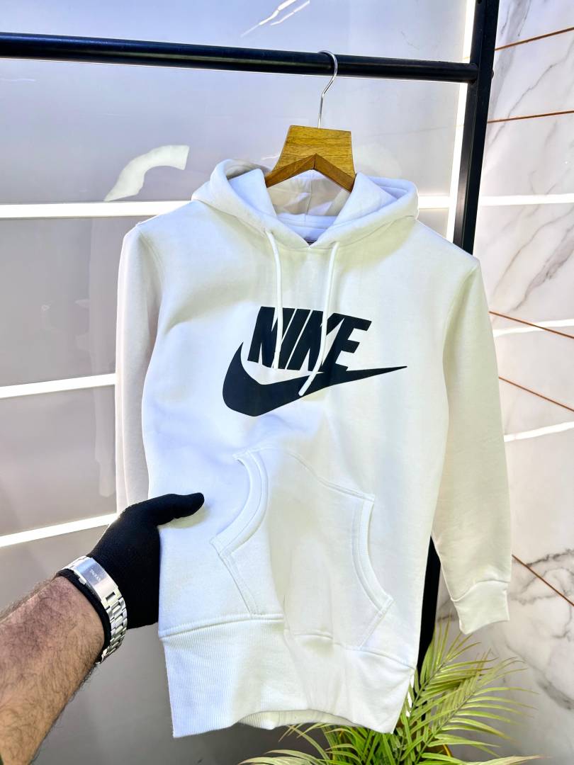 Nik e Imported White Printed Super Premium Hoodie F2975-W1